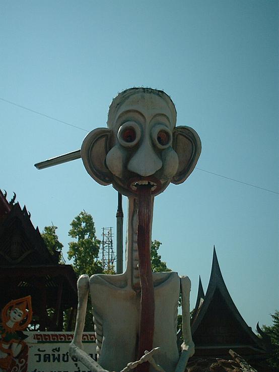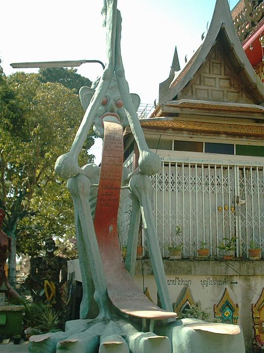 ที่เห็นเนี่ย..เป็นรูปปั้นเปรต....ซึ่งมีคติธรรมที่ดีสอนให้คนรู้สึกกลัวเรื่องการทำความไม่ดี...ชาติหน้าอาจต้องเกิดเป็นเปรต มีรูปร่างหน้าตาที่น่าเกียจ....ไม่รู้ว่าเด็กรุ่นใหม่จะยังมีใครรู้จักบ้างหรือเปล่าก็ไม่รู้...