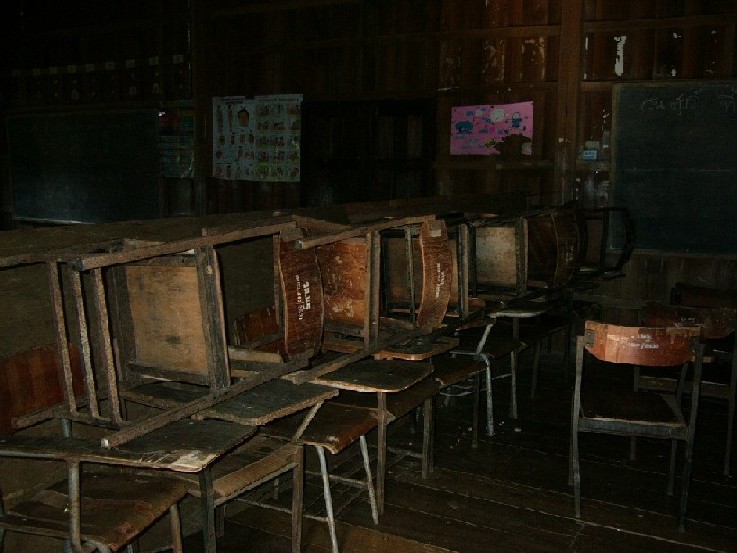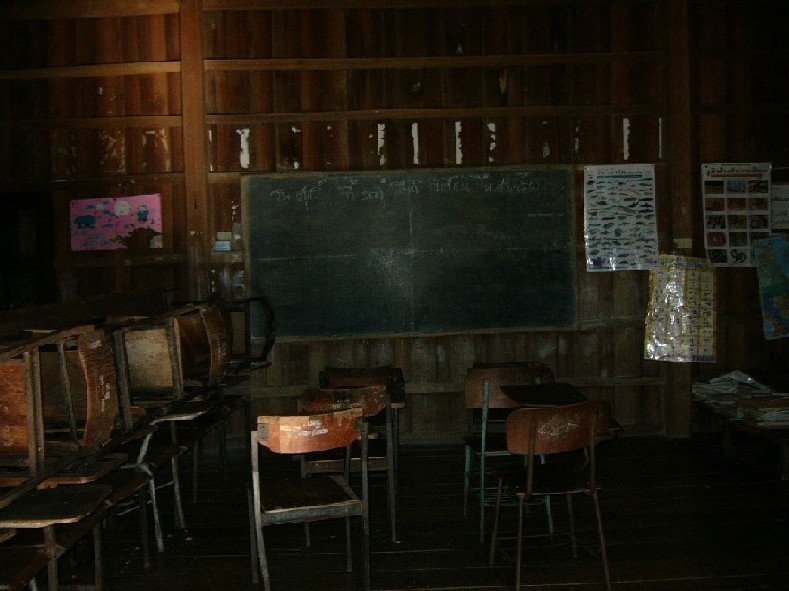 สภาพโรงเรียนที่พวกเราเห็นก็คือเป็นอาคารไม้ 1 ชั้น ตั้งอยู่บนเนินเขา ห้องเรียนเป็นห้องเรียนรวมไม่มีการกั้นแบ่งระดับชั้น เนื่องจากจำนวนครูและกระดานดำที่มีจำกัด เพดานเป็นไม้อัดที่เก่าและผุ บริเวณหน้าระเบียงจะมีคูลเลอร์น้ำตั้งไว้สำหรับให้นักเรียนดื่ม มีการสอนตั้งแต่ อนุบาล ป. 4 มีนักเรียนทั้งหมด 50 คน ครู 2 คน เป็นครูชาวบ้านสอนอนุบาล 1 คน ครูอาสาสอน ป.1 ป.4 อีก 1 คน ไม่มีการส่งครูในเมืองเข้าไปสอนเนื่องจากระยะทางที่ไกลและลำบาก ในหมู่บ้านชาวบ้านส่วนใหญ่จะเป็นชาวกระเหรี่ยงที่ยากจน มีประมาณ 50 ครอบครัว และข้อมูลที่ทราบเพิ่มเติมอีกก็คือ เคยมีทีมสำรวจจากคณะอื่น ๆ เข้ามาหลายครั้ง แต่ก็ไม่มีคณะใดที่จะกลับไปที่นั่นอีก เนื่องจากระยะทางที่ไกลและกันดาร