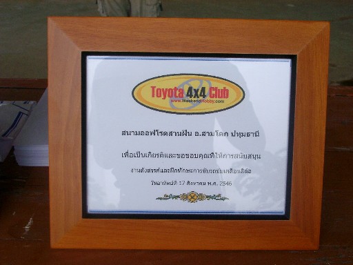 ใบขอบคุณผู้ให้การสนันสนุนงานครั้งนี้ ก็มี สนามสานฝัน เฮียตือ Auto 4WD แล้วก็ ARB Accessories Thailand ครับ