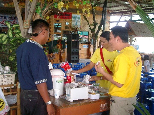 เฮียตือ คุณซอ ARB กำลังรอกาแฟมื้อเช้าจาก แม่บ้าน TOC ของเรา (น้องแขก คนนั่งข้างน้องแบล๊ค)