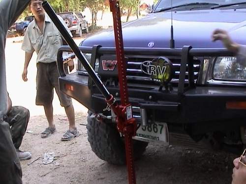อาจารย์กำลังสอนสั่งการใช้ไฮลิฟแจ๊กดึงรถ