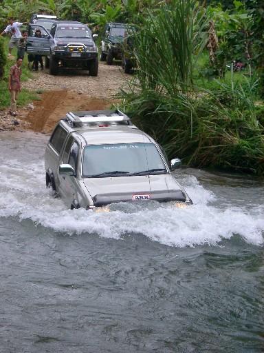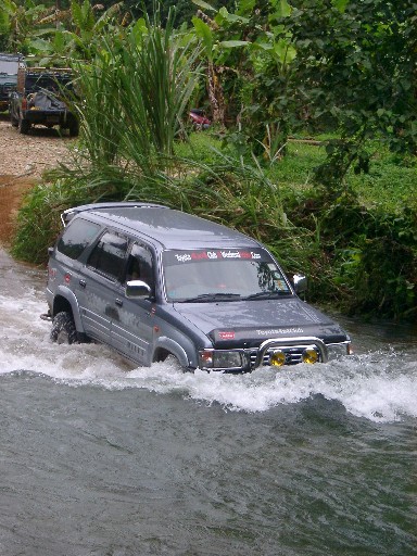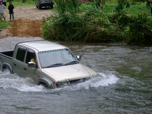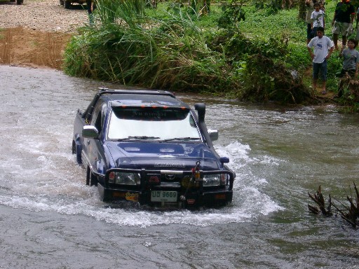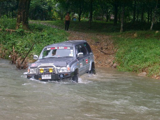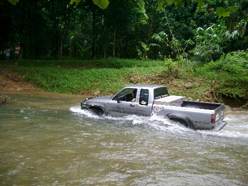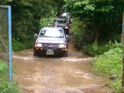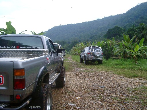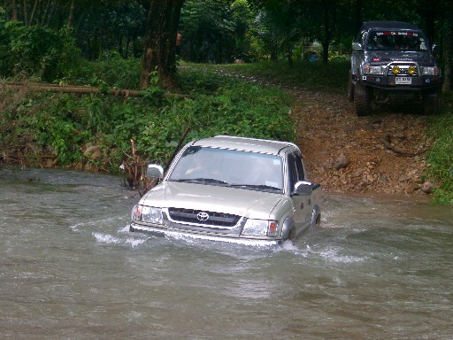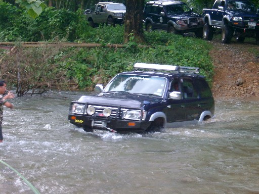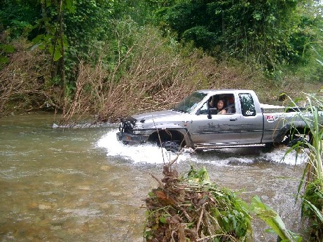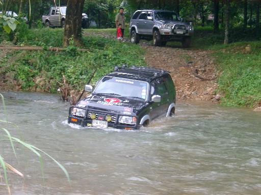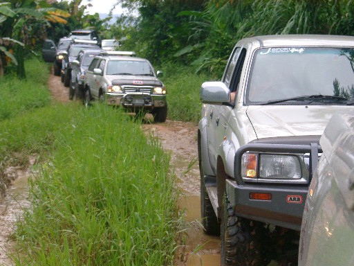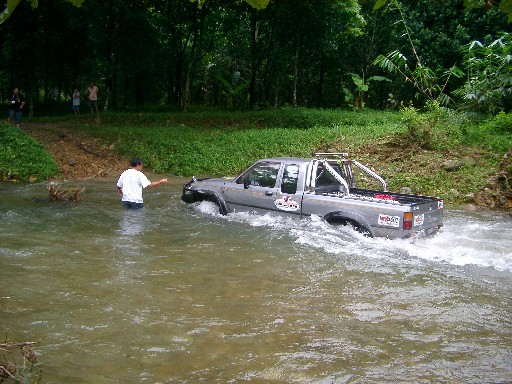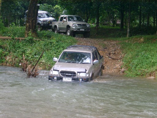 หลังจากจับจ่ายซื้อเสบียงมื้อเที่ยง รวมทั้งเหล้ายาปลาปิ้งแล้วก็เริ่มเดินทางเข้าสู่คลองมะเดื่อกันครับ หลังจากขบวนเลี้ยวซ้ายจากถนนหลักที่จะไปน้ำตกนางรองเพื่อเข้าเส้นทางซึ่งอยู่ติดกับรั้วของโรงเรียนบ้านดง เป็นทางลาดยางขนาดเล็ก พอถึงแยกเข้าวัดก็ให้ทะแยงขวา วิ่งไปสักพักก็จะเจอแยกให้ไปทางซ้ายอีกนั่นแหละ ไปทางโรงเรียนเขาหัวแก้ว ผ่านบ้านเพื่อนแชมป์ด้านขวา วิ่งสุดทางลาดยางก็จะเริ่มเข้าทางลูกรัง เป็นจุดเริ่มต้นของเส้นทางออฟโรดแบบเบาๆ จากสภาพถนนที่ขับผ่านเราเดาได้เลยว่า ฝนตกในพื้นที่มาก เพราะตลอดเส้นทางมีน้ำขังเป็นช่วงๆ สลับกับหินลอยพอให้เราได้สนุกบ้าง