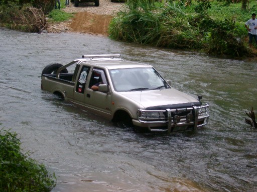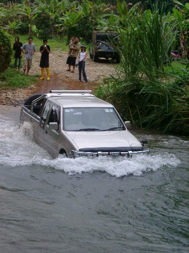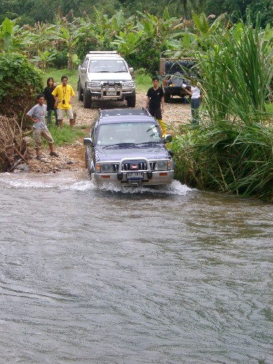 หลังจากจับจ่ายซื้อเสบียงมื้อเที่ยง รวมทั้งเหล้ายาปลาปิ้งแล้วก็เริ่มเดินทางเข้าสู่คลองมะเดื่อกันครับ หลังจากขบวนเลี้ยวซ้ายจากถนนหลักที่จะไปน้ำตกนางรองเพื่อเข้าเส้นทางซึ่งอยู่ติดกับรั้วของโรงเรียนบ้านดง เป็นทางลาดยางขนาดเล็ก พอถึงแยกเข้าวัดก็ให้ทะแยงขวา วิ่งไปสักพักก็จะเจอแยกให้ไปทางซ้ายอีกนั่นแหละ ไปทางโรงเรียนเขาหัวแก้ว ผ่านบ้านเพื่อนแชมป์ด้านขวา วิ่งสุดทางลาดยางก็จะเริ่มเข้าทางลูกรัง เป็นจุดเริ่มต้นของเส้นทางออฟโรดแบบเบาๆ จากสภาพถนนที่ขับผ่านเราเดาได้เลยว่า ฝนตกในพื้นที่มาก เพราะตลอดเส้นทางมีน้ำขังเป็นช่วงๆ สลับกับหินลอยพอให้เราได้สนุกบ้าง