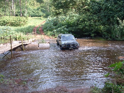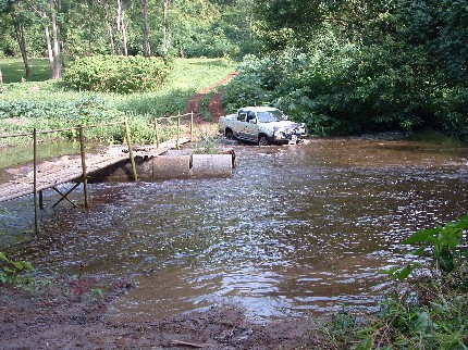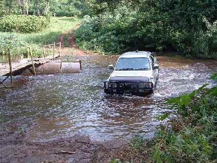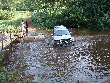 บนสะพานมันลื่นครับ เนื่องจากก่อนขึ้นสะพานมีบ่อเลนอยู่ ตัดสินใจลงข้างล่างดีก่า