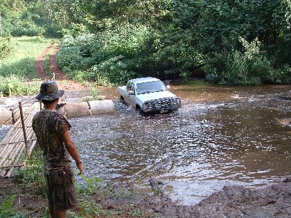คุณ Riderman ชี้ให้ดูสะพานไม้ที่พวกเราต้องข้ามไป น่าจะเป็นสะพานแรกๆครับ
