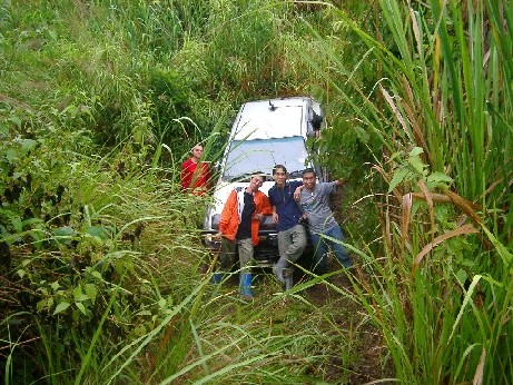 สัมผัสแรกบอกถึงความร่มรื่นของเส้นทางครับ ตลอดเส้นทางขึ้นมีต้นไม้ขึ้นตลอด ระดับความสูงน่าจะสักประมาณ 600-700 เมตรจากระดับน้ำทะเลนะครับ สักพักใหญ่เราก็ถึงบริเวณลานกว้าง อันเป็นที่ตั้งสถานีวิทยุเก่า มีบ้านอยู่ 4 หลัง แต่ทรุดโทรมซักหน่อย มีห้องน้ำ พร้อมกับน้ำใช้พอเพียงครับ รอบๆลานเป็นแนวต้นไม้ ให้เราได้อาศัยร่มเงากางเต็นท์ ลมพัดเย็นสบายจริงๆครับ