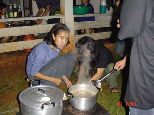 หลังมื้อเที่ยงที่เป็นอาหารยอดนิยมนักท่องเที่ยวอย่างเราๆก็ไม่พ้น ไก่ย่าง ส้มตำ ซุปหน่อไม้ คอหมูย่าง แล้วก็ข้าวเหนียวแล้ว ก็นั่งคุยเล่นกันพักใหญ่ ต่อจากนั้นก็มีการสาธิตการชงกาแฟสด โดยพี่ 400 สมาชิกจาก Fordclub.Net นำอุปกรณ์มาให้เราได้ทดลองกัน รวมทั้งคุณ Tourist ก็พาเอานักดื่มกาแฟของเราต่อแถวกันยาว
