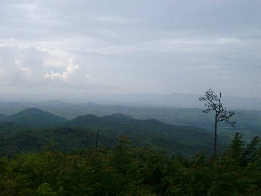 สัมผัสแรกบอกถึงความร่มรื่นของเส้นทางครับ ตลอดเส้นทางขึ้นมีต้นไม้ขึ้นตลอด ระดับความสูงน่าจะสักประมาณ 600-700 เมตรจากระดับน้ำทะเลนะครับ สักพักใหญ่เราก็ถึงบริเวณลานกว้าง อันเป็นที่ตั้งสถานีวิทยุเก่า มีบ้านอยู่ 4 หลัง แต่ทรุดโทรมซักหน่อย มีห้องน้ำ พร้อมกับน้ำใช้พอเพียงครับ รอบๆลานเป็นแนวต้นไม้ ให้เราได้อาศัยร่มเงากางเต็นท์ ลมพัดเย็นสบายจริงๆครับ