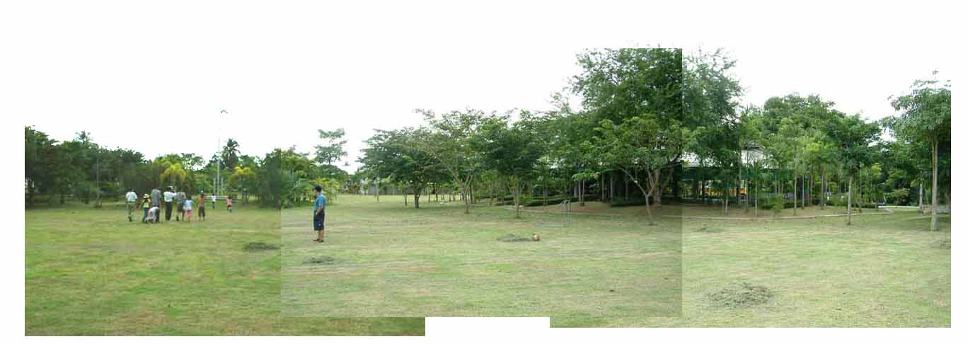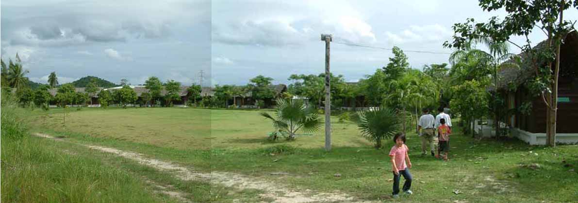 บ้านแต่ละกลุ่มจะมีสนามกว้างๆแบบนี้....กลุ่มนี้เรียก "โบกี้รถไฟ " ครับ