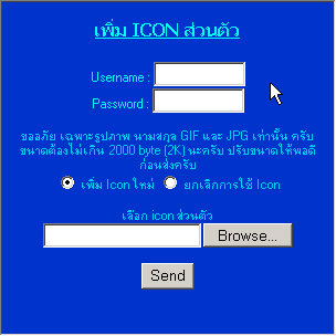 หลังจาก click ที่คำว่า "เปลี่ยน icon ส่วนตัว" แล้ว หน้าต่างเล็กๆนี้ก็จะขึ้นมาให้เราใส่ username กับ password