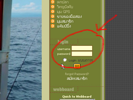 ในหน้าเดียวกันเลื่อนลงมาหน่อย ในส่วนของ login ครับ ใส่ username กับ password ที่ใส่ไว้ตอนสมัครเป็นสมาชิก