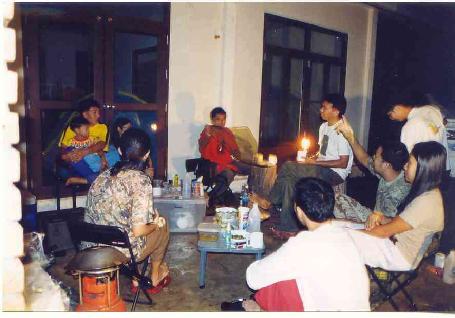 ต้องกางเต้นท์ภายในบ้านพักครับ และที่สำคัญครับ โดนลงริ้น เฮ้ย โดนตัวริ้นกัดน่าดูเลยครับ เลยอยู่กันไม่ค่อยดึก แค่นายเอ บอกไม่ไหวครับ แต่เอ๊ะ แล้วสาวที่ไหนมานั่งข้าง ๆ ผมนี่