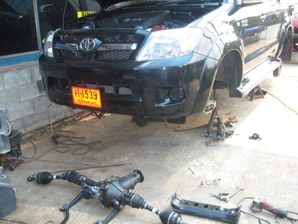 ด้านหลังให้เอาแหนบบรรทุกตัวล่างสุดออกถ้าใส่ไว้รถมันจะแข็งส่วนโช๊คอัพไม่แน่ใจว่ายาวพอหรือป่าว