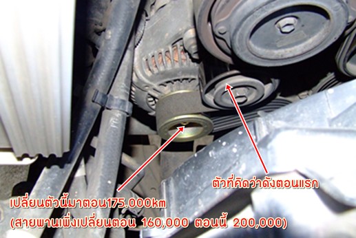 ทีนี้เลยจะไปหาซื้อพูเล่ไดชาร์ทแบบเดิมมาใส่ แล้วลองเปลียนสายพานใหม่อีกที