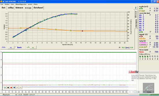 ให้โดยการเพิ่มเวลาการฉีดน้ำมันเข้าไปอีก ให้ AFR เป็น 1.0 โดยเราจะเห็นว่า เมื่อ สับเป็นแก๊สแล้ว ค่าการฉีดน้ำมัน จะมากขึ้น และ ค่า Long Fuel Trim จะมีค่ามากขึ้นเช่นกัน