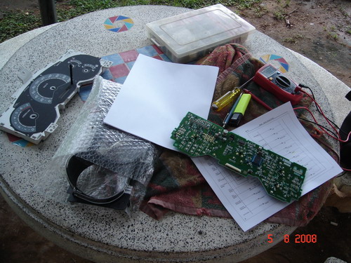 ด้วยความซุกซนของผม วันนี้ได้รื้อตัวเรือนหน้าปัดออกมาดู หลังจากผมกะพี่ชายได้ช่วยกันรุมเช็คกันอย่างละเอียด ก็เลยได้ถึงบางอ้อ.. Diagram ที่ผมได้มา(ไม่รู้ว่าที่พี่ๆมีเหมือนกันกะผมหรือเปล่า) เป็นรุ่นนี้ก็จริง อุปกรณ์ก็เหมือนกันทุกอย่าง เพียงแต่.... การต่อสายไม่ตรงกันซะทีเดียว บางเส้นถูก-บางเส้นไม่ถูก (ตย. หมายความว่า รูในsocketที่ควรจะเป็นcruise controlกลับกลายเป็นไฟเลี้ยวเสียได้ โอ้แม่จ้าวว...) ต้องกลับไปเช็กการวางสายและไล่สายใหม่ทั้งหมด (ปวดหัวหน้าดู) ไว้เมื่อไหร่ได้คำตอบจะมาแจ้งให้ทราบกันอีกครั้ง..