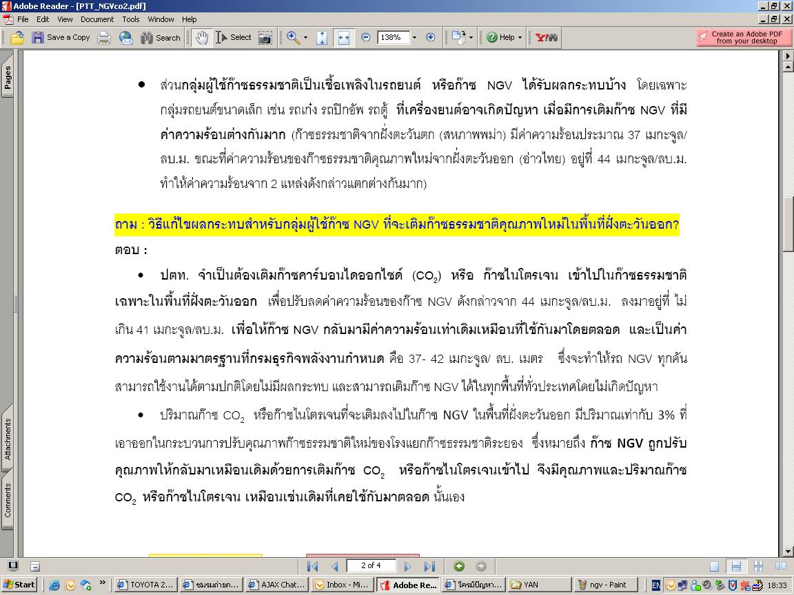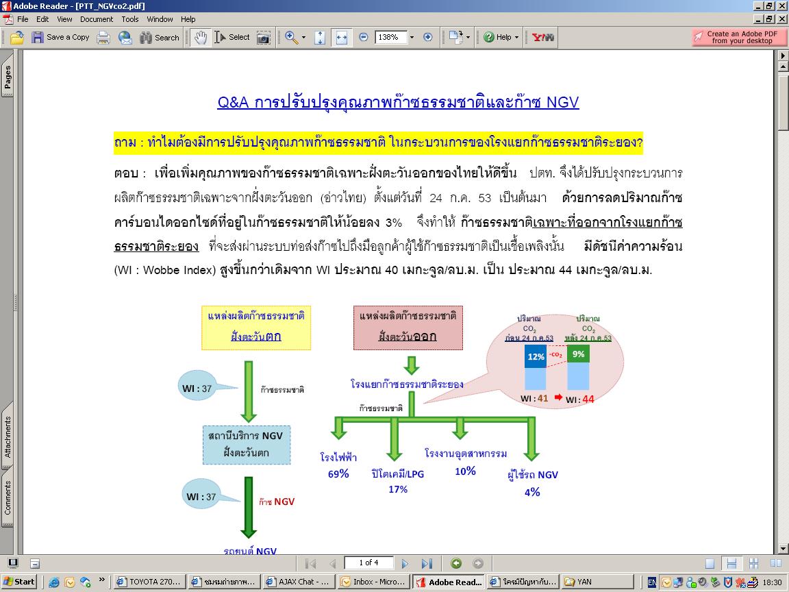 วันนี้ มาใหม่ บอกว่ายังวิ่งได้น้อย เหมือนเดิม ผมเริ่มแอะใจ สอบถาม ว่า พี่ทราบข่าว ปตท. ปรับปรุงเรื่องคุณภาพ ก๊าซ หรือไม่ พี่เขาบอกว่า ไม่ทราบเลย