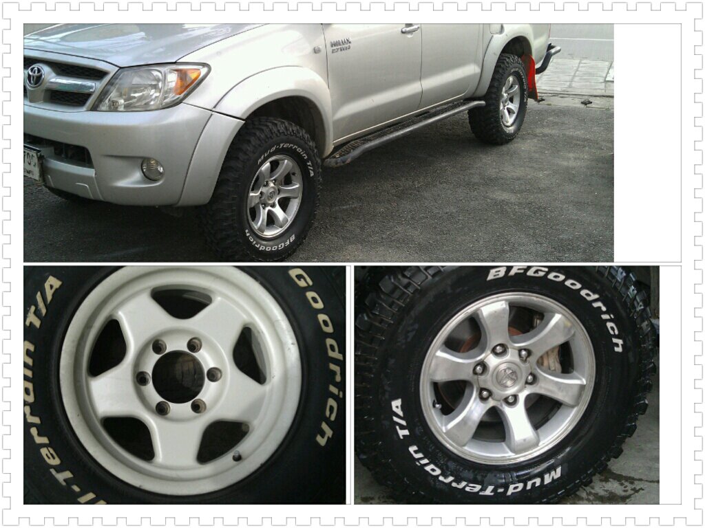 แรงตะกุยของBFน้องๆยางMudเลย เทียบกับยี่ห้อBกับDที่เค้าเคยใช้บอกว่าต่างกันเยอะ ส่วนBF All ยังพอหาในราคาที่จับต้องได้ไม่เกินเส้นละ8พัน