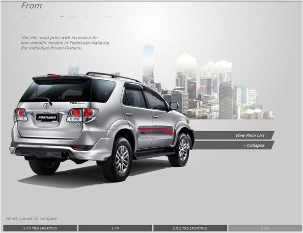 spec ของ Fortuner รุ่นดีเซล 2.5 G ที่ขายในมาเลเซีย
