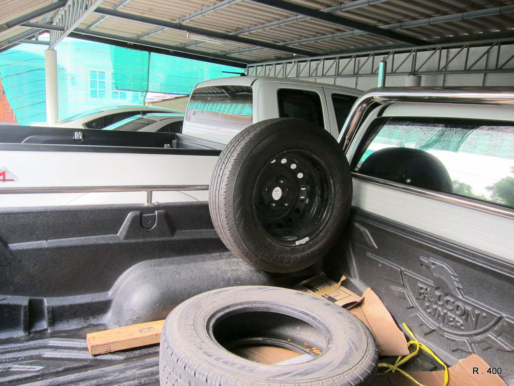 2.iรถ Fortuner 2.7 4x4 ผมวางถังแก๊สแทนยางอะไหล่ ผมใช้ยาง BF Allterrain และเตรียมปั๊มลม 12v Puma สามารถเติมลมได้แม้จะเป็นล้อรถไถ ทำให้หมดกังวลปัญหานี้ได้เช่นกัน ตรงนี้มีข้อดีคือสามารถช่วยคนอื่นที่มีปัญหายางแบนได้ด้วย เคยใช้ตอนออกทริปมาแล้วถือว่าคุ้มค่ามาก