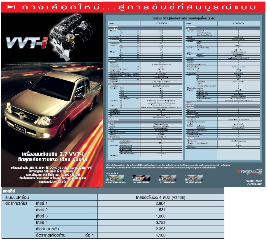 อัตราทดเฟืองท้าย2.7VVTi 4x2