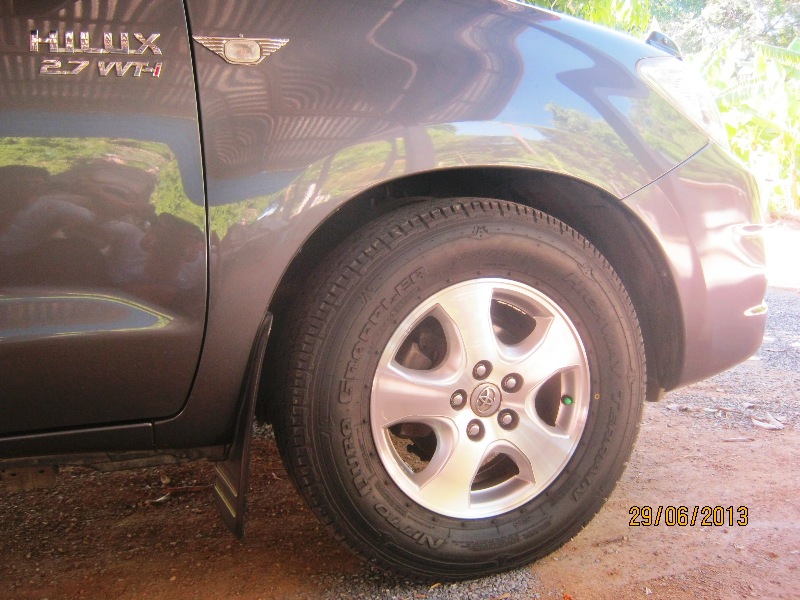 ผมเคยถ่ายรูปไว้หาไม่เจอว่าอยู่กระทู้ไหน เป็นของพี่ชายแฟนผมเขาเพิ่งซื้อมาใช้กับ นิสสันฟรอนเทียร์ เป็นยางที่ไม่ได้เอาไว้ลุยอะไรวิ่งบนถนนดำนี่แหละ เสียงเงียบใช้ได้ อายุทนทานพอควร อย่าลืมว่าเป็นยาง Made in thailand นะครับ คุณภาพจะดีกว่ารุ่นที่นำเข้ามาจาก อินโด มาเลย์ ฟิลิปปินส์ เพราะยางขนาดเล็กบริดสโตนผลิตเองในไทย