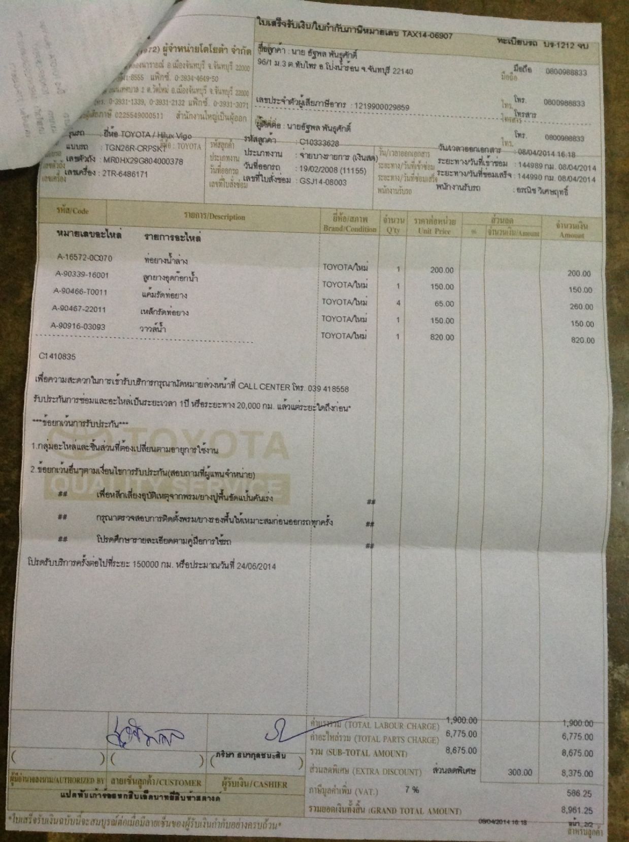 โตโยต้าจันทบุรี ใจร้ายจัง ไม่ให้ส่วนลด ค่าอะไหล่เลยเหรอครับ