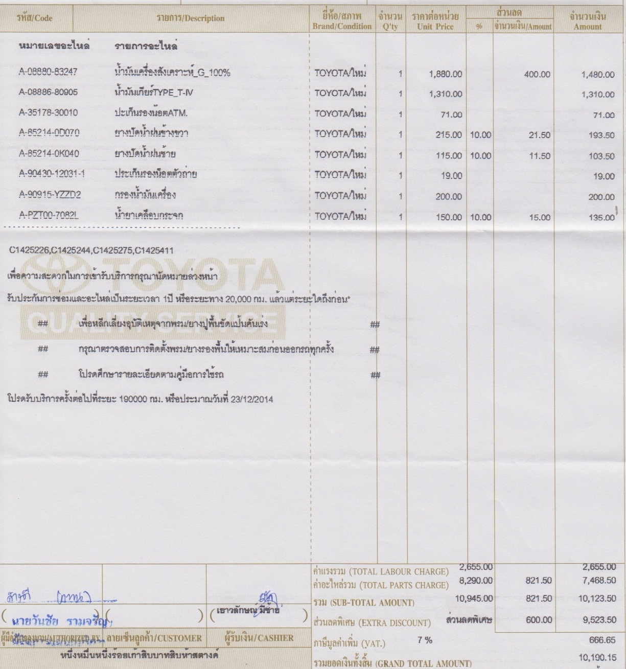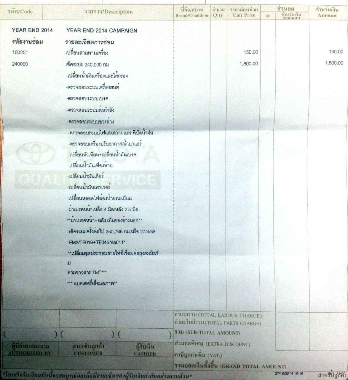 ของผมเข้าเช็คระยะที่ 180,000 km. หมดไป 12,xxx บาท