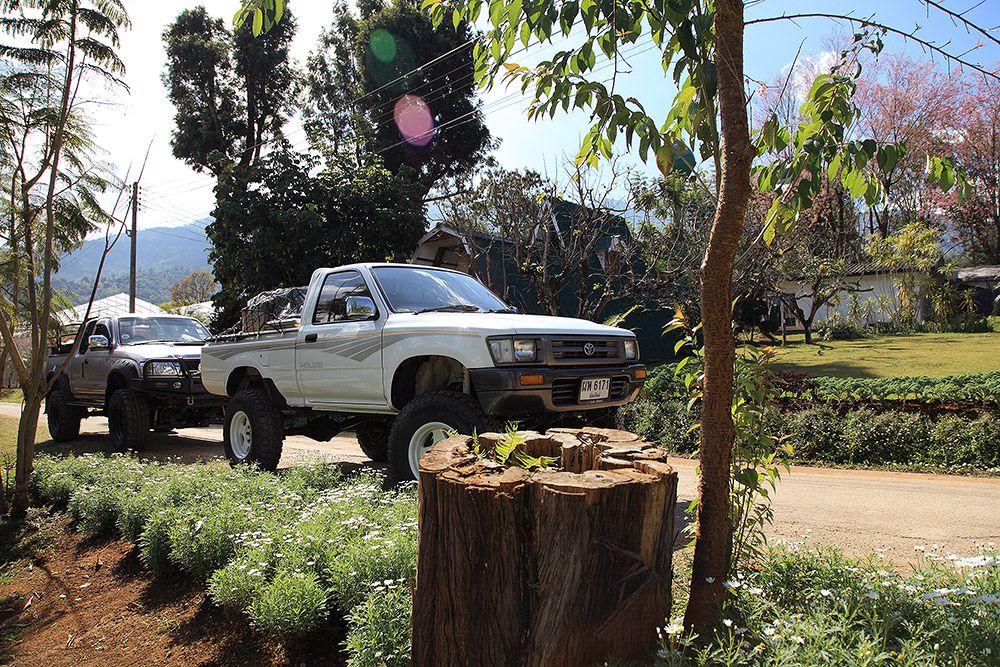 รถขับเคลื่อน2ล้อทุกคันจอดที่อนามัยบ้านแม่หลองหลวง ต่อไปจากนี้4x4อย่างเดียวครับ
