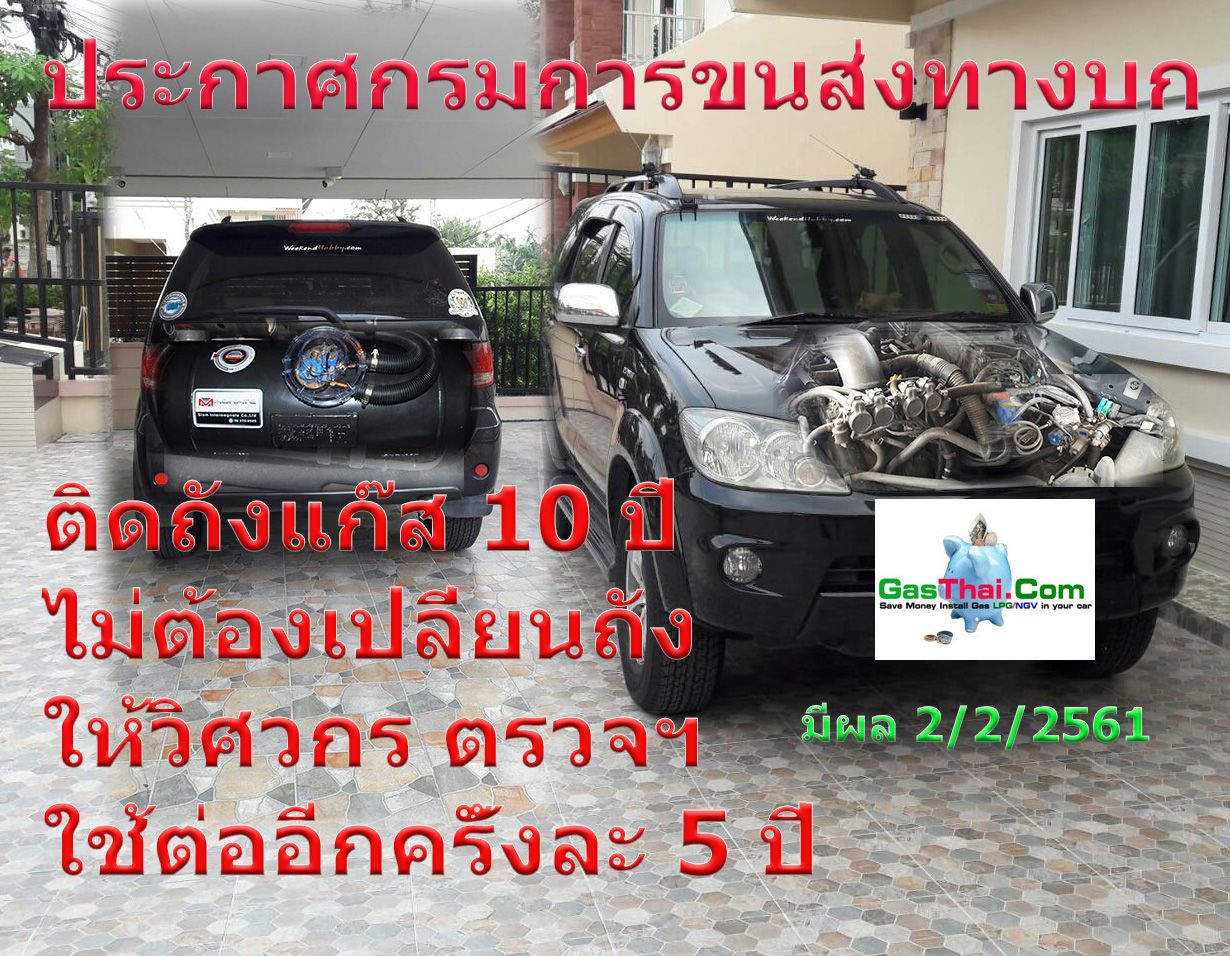 รถติดแก็ส LPG ครบ 10 ปี ไม่ต้องเปลี่ยนถัง ให้วิศวกรตรวจใช้ได้ครั้งละ 5 ปี ตามประกาศขนส่งใหม่