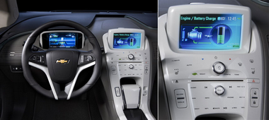 เทคโนโลยีภายในห้องโดยสารที่โดดเด่นของโวลต์ bul orangeส่วนแสดงข้อมูลการขับขี่ผ่านหน้าจอแอลซีดี แทนที่จะเป็นกรอบมาตรวัดต่างๆเหมือนรถยนต์ทั่วไป ที่คอนโซลกลางยังติดตั้งมอนิเตอร์ระบบสัมผัสขนาด 7 นิ้ว เป็นอุปกรณ์มาตรฐานในการแสดงข้อมูลต่างๆ ของโวลต์ ปรับอุณหภูมิในห้องโดยสารและควบคุมอุปกรณ์อำนวยความสะดวก ความบันเทิง ด้วยระบบสัมผัส สามารถเพิ่มเติมการติดตั้งระบบนำทางผ่านสัญญาณดาวเทียมบนฮาร์ดไดร์ฟ (hard drive) ที่ติดตั้งซ่อนไว้ในคอนโซลกลาง โดยสามารถใส่ข้อมูลแผนที่ หรือเป็นไดร์ฟสำหรับเก็บ