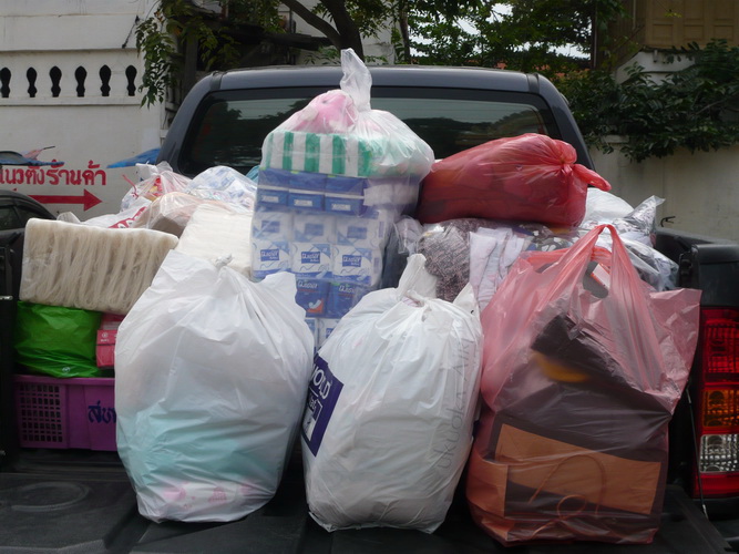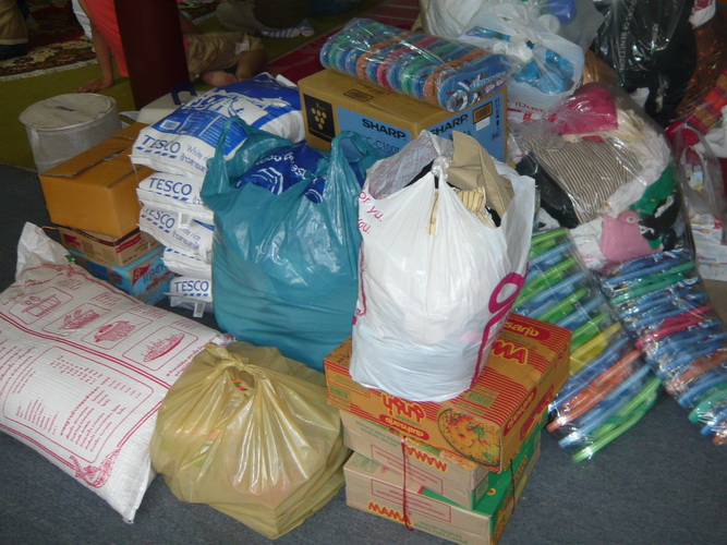 ข้าวสาร...มาม่า...นม...สมุด..ดินสอ ..รองเท้า