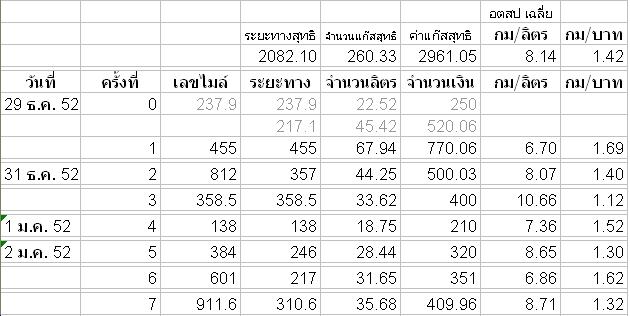 ของผมก็ประมาณเนี่ยแหละ D-Cab M/T 8-9 กม./ลิตร กับ E10-95
