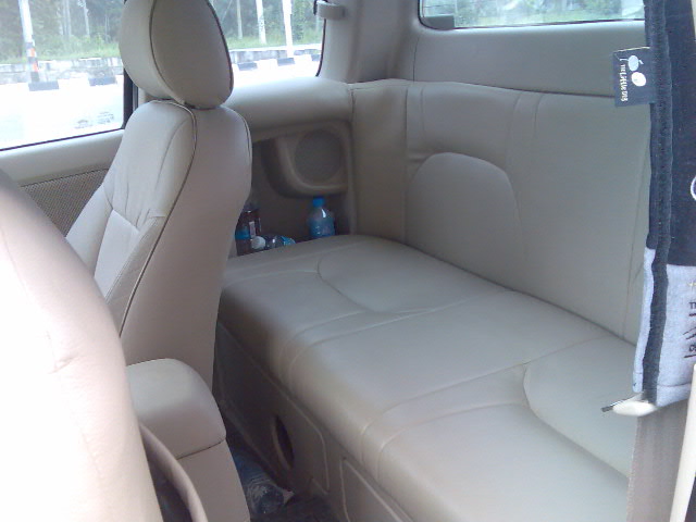ซ้ายมือตู้ซับแบนพาส 10 นิ้วว๊อยซ์คู่ ช่องกลางเก็บถังดับเพลิง ถุงเครื่องมือ แม่แรง ผ้าห่ม ผ้าเช็ดตัว ช่องขวามือ ชั้นบนวางแอมป์ 6 Ch ชั้นล่างเก็บกระเป๋า inverter ของใช้อื่นๆ(พื้นที่กว้างกว่าเดิม) D.I.Y. ที่เสียบบุหรี่เพิ่ม 1 ชุดใช้สายเส้นใหญ่ไว้ต่อ inverter 500 watt
