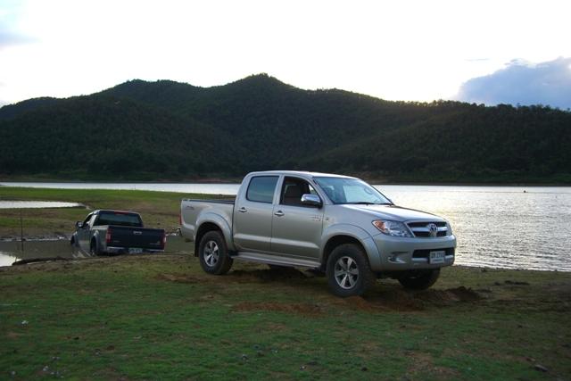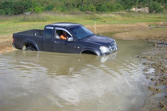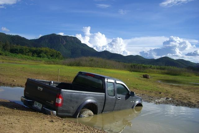 จะไปตกปลา สงสัยโดนปลาแช่ง หรือรถขี้ร้อนก็ไม่รู้ ติดแหง๊กอยู่ในอ่าง(เก็บน้ำ)ดิ้นไปไหนไม่ได้เลย