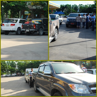 พี่ท๊อปมาจอดขวาง พี่สุก็มาแล้นนน ก็เลยปรึกษาหารือ เส้นทาง วิธีขับ การเรียงขบวน ความเร็ว และ...(ไม่มีหรอก พูดไปงั้นแล่ะ ตอนนี้ฟังไม่ทัน วิ่งไปเข้าห้องน้ำ ออกมาคนหายหมดเลย) ขณะที่เอม่อน (ใช่ป่าว)ถูกแก็งค์ต้มตุ๋ย เอ๊ยต้มตุ๋นหลอกให้ตอบแบบสอบถามอยู่หน้าห้องน้ำ เหอๆๆๆ