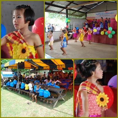 กิจกรรมกันไป เด้กๆเค้ามาแสดงกลองยาว กะรำให้ดู น่ารักดี แต่สงสารนางรำ รำๆอยู่พอลงเวที ตะลีตะเหลือกเปลี่ยนเสื้อผ้าร่วมกิจกรรมแทบไม่ทัน