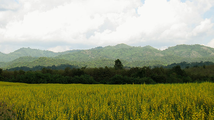 ระหว่างทางออกจากโรงเรียน เราแวะถ่ายภาพกับทุ่ง " ปอเทือง"