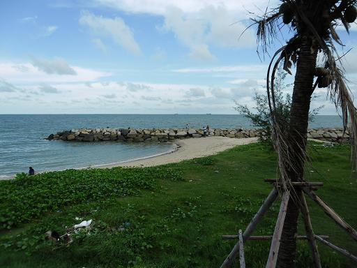 เขาเอาหินมาถมหาดเพื่อกั้นคลื่น ไม่งั้น หาดทรายพังไปหมดอย่างที่เห็น