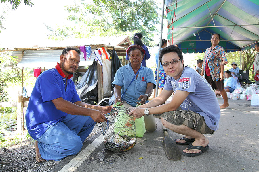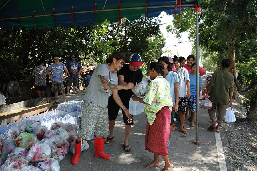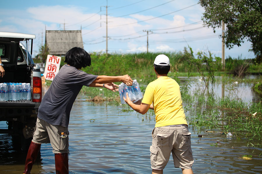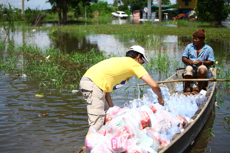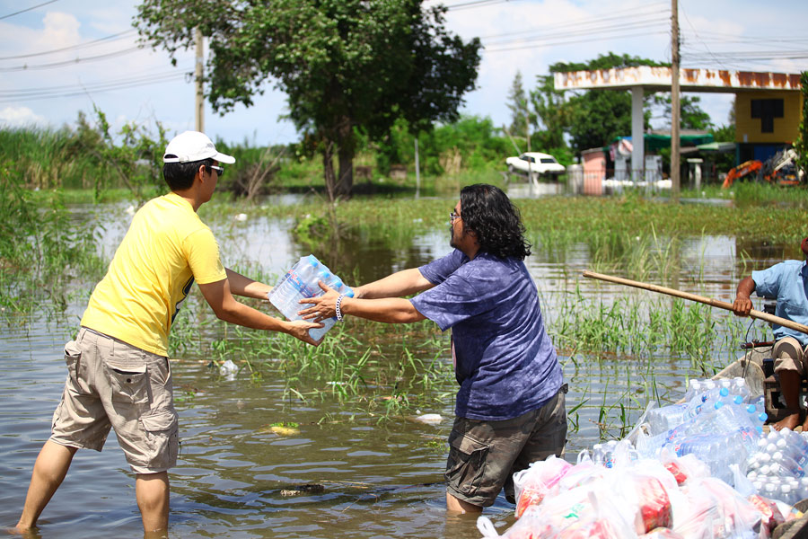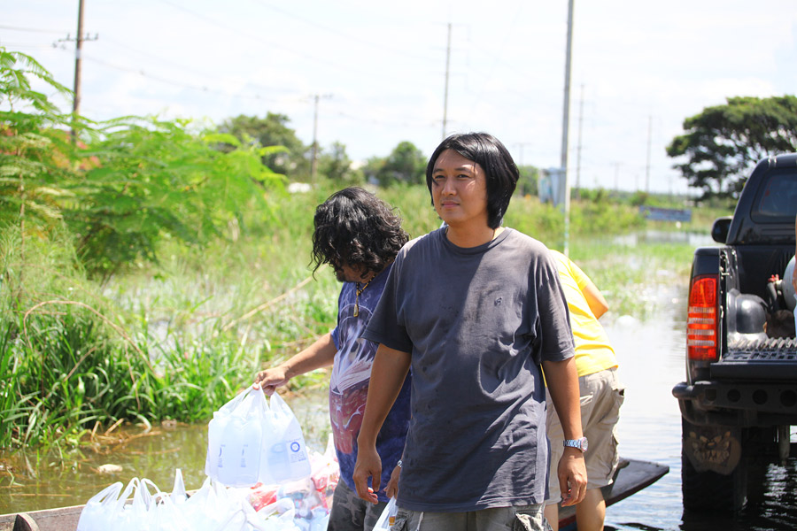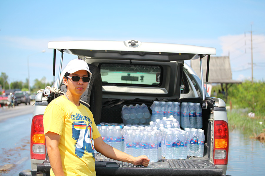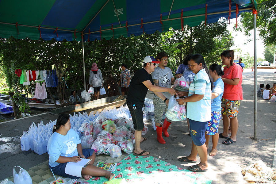 วันนี้รวมตัวกันนำอาหาร น้ำดื่ม และยารักษาโรค ไปช่วยเหลือผู้ประสบภัยน้ำท่วมครับ