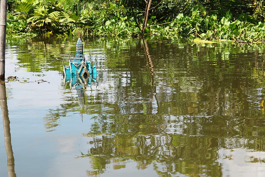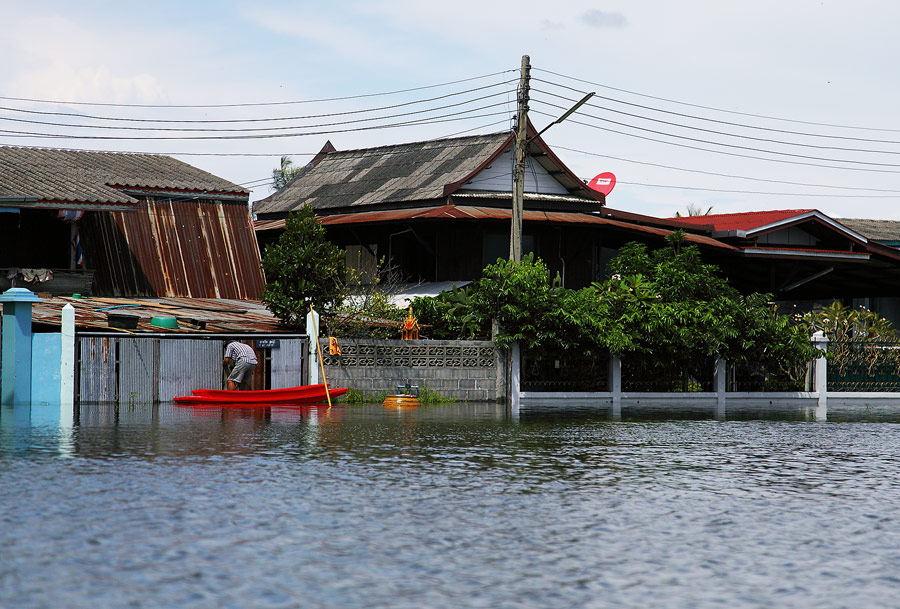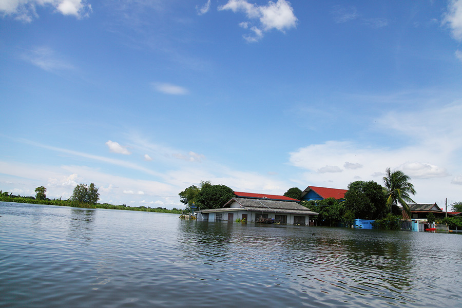 ตอนนี้ระดับน้ำตรงถนนที่เอารถไปจอดลำเลียงของลงเรือ เรือเล็กสามารถลากผ่านข้ามถนนได้แล้วครับ