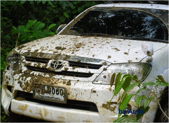 รถพี่นิพนธ์ขึ้นได้แล้วกันชนหน้าครูดไปกับดิน ดีที่เป็นกันชนเหล็กมีไซด์เรียว รถจึงไม่เสียหาย