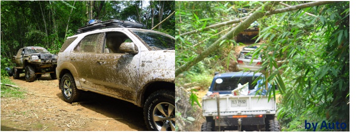 ข้ามมาได้ครบทุกคันแล้วมาตั้งขบวนกันใหม่ เพื่อเดินทางกันต่อ ผมอาศัยนั่งรถมากับพี่ดำรงส่วน Fortuner ของผมต้องจอดไว้ที่กองม่องทะเพราะไม่สามารถเอาข้ามเนินแห่งนี้ได้ เพราะจะเสียหายอย่างหนัก