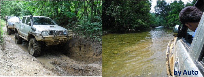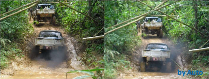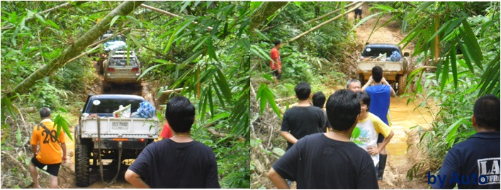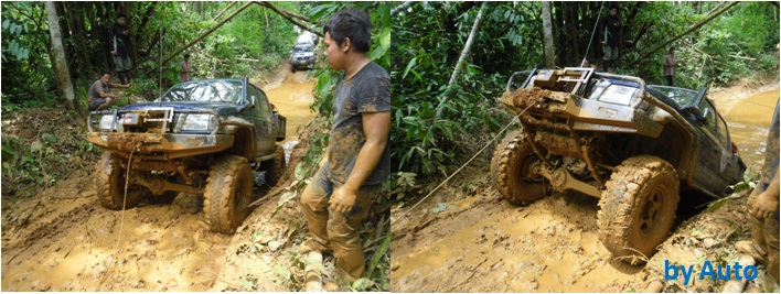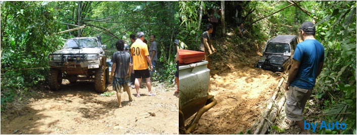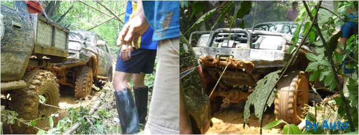เนินนี้สุดสุดจริง ๆ ต้องยกข้ามด้วย Winch ผ่านมาให้ได้ รถต้อง มีกันชนเหล็กด้านหน้ากับไซด์เรียว ที่แข็งแรงและความสูงของรถต้องได้ด้วยไม่งั้นยกข้ามมาไม่ได้ Winch ก็ต้องทรงพลังพอสมควรเพราะต้องดึงกับคันหน้า ส่วนรถคันหน้าก็ต้องดึง Winch กับต้นไม้ ไม่งั้นเอารถไม่อยู่