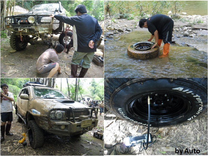 ปั๊มลมกลายเป็นส่วนสำคัญในทริปนี้ไปเลย เพราะว่าทั้งขบวน 12 คัน มีรถผมที่พกพาปั๊มลมมาด้วย แค่คันเดียว