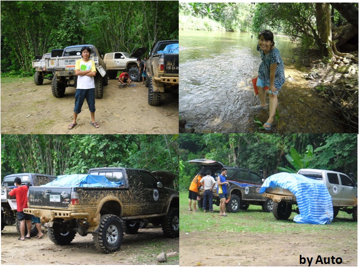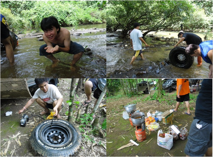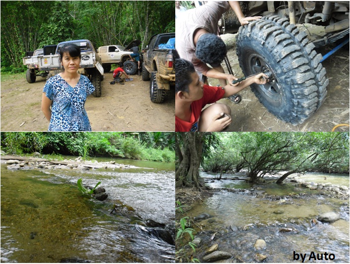 พี่อ้วนเอาแม๊กไปล้างโคลนออกจากยาง ที่ลำธาร