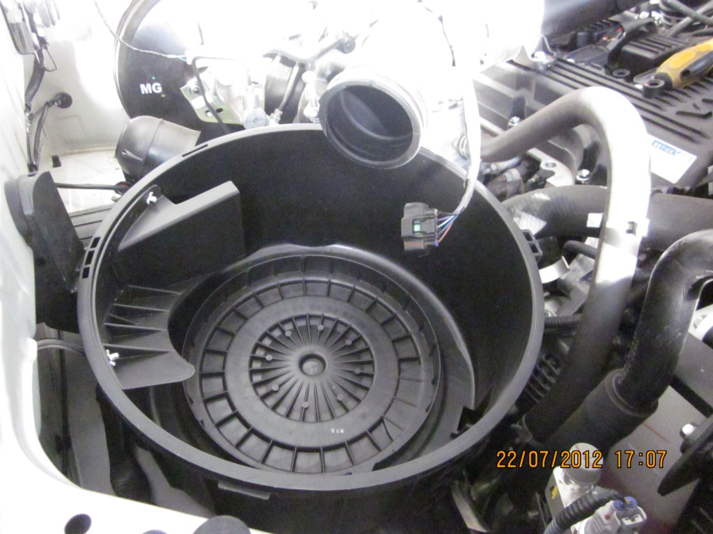 ขั้นตอนที่ 1 เริ่มจากถอดเจ้ากรองอากาศออก ให้ถอดขั้วสายไฟที่ต่ออยู่ออกก่อนโดยปลดล็อกและดึงออกตรงๆ เมื่อปลดสายไฟออกแล้วให้ยกกระเดื่องที่ล็อคเจ้าฟากรองอากาศออก ที่ฝากรองกากาศจะมีเข็มขัดล็อคอยู่ ผมคลายออกเลยเพื่อถอดท่อยางออกเพื่อที่จะสะดวกในการทำงาน ดูรูปประกอบ
