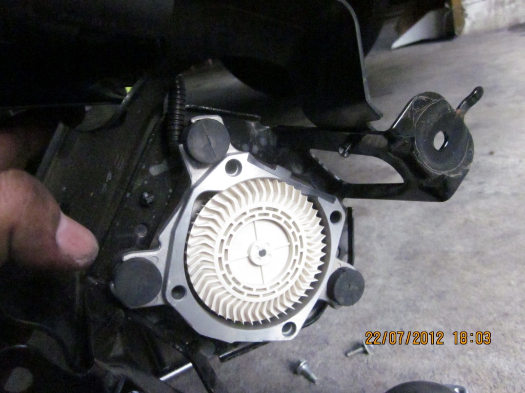 ฟองน้ำที่เป็นปัญหาอยู่ด้านในครับ อยู่ที่หน้าพัดลม Blower ตัวนี้คือตัวปัญหาต้องถอดออกครับ