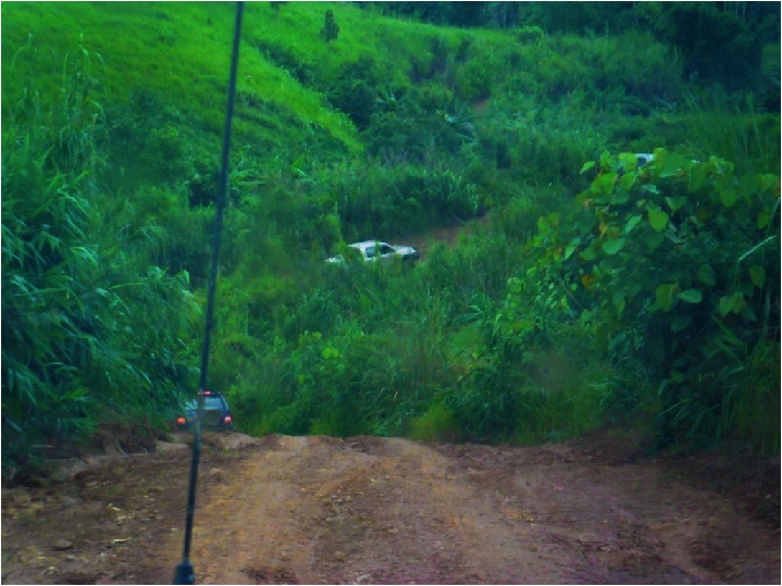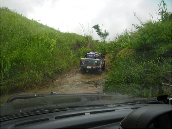 เนื่องจากดินลื่นมากรถพี่เด่นวิ่งมาควบคุมรถไม่อยู่ ( สังเกตุรอย ) ถึงแม้จะพยายามควบคุมรถแล้วก็ตามแต่รถยังสไลด์ลงร่องน้ำข้างทาง