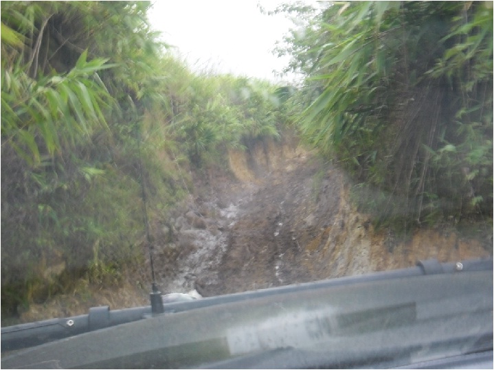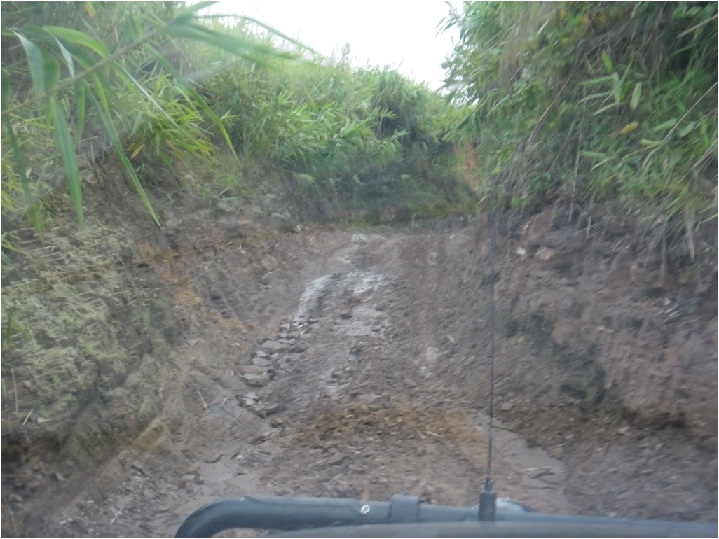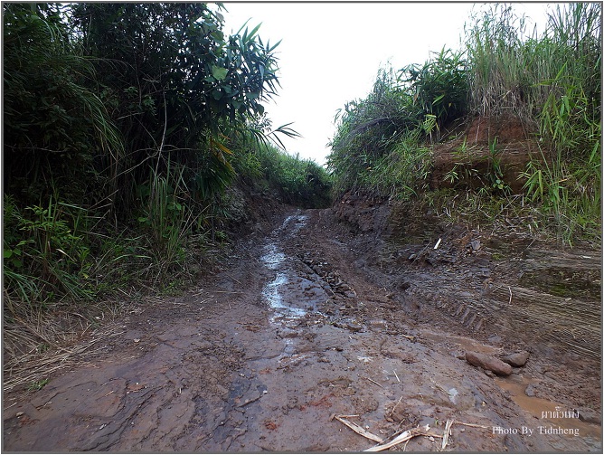 ทางขึ้นเนินชัน ดินเปียกลื่นกันสุด ๆ